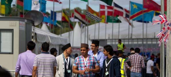 The makeshift village is set up by volunteers each year and includes stalls, exhibitions and even a satellite television studio, which broadcasts the event live across the world. Members raised a union jack at the opening ceremony of the gathering and will form a human chain to “re-affirm their rejection of violence and extremism”.
