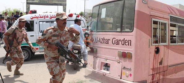 In a shocking assault, gunmen in police uniforms stormed into a bus carrying members of the Ismaili community – a minority Shiite Muslim sect and shot the passengers.