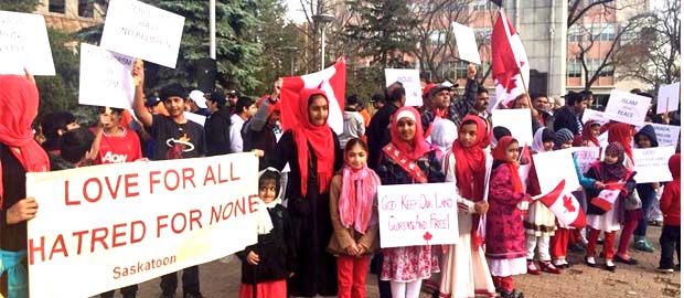Members of the Ahmadiyya Muslim community held a solidarity rally in front of Saskatoon’s city hall to show support for the fallen soldiers and stand in solidarity with Canadians to condemn the attacks in Canada and abroad.