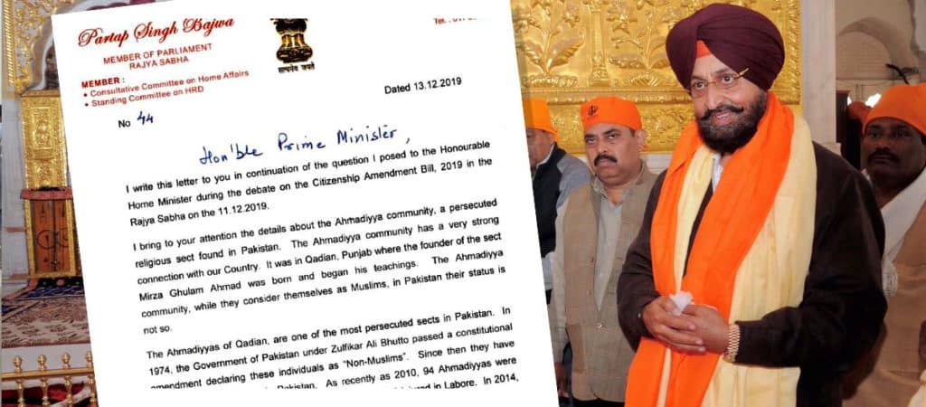 Congress leader Partap Singh Bajwa on Friday wrote to Prime Minister Narendra Modi regarding the persecution faced by the Ahmadiyyas in Pakistan and urged that the recent Citizenship (Amendment) Act, 2019 needs to be further amended so as ‘to allow the Ahmadiyyas a chance to return to Qadian.’