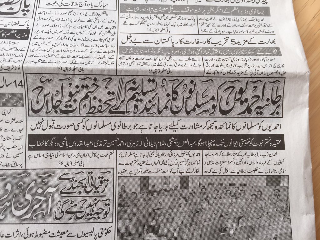 “They (Ahmadis) are committing blasphemy by using the name of Islam to propagate their false beliefs among youth and are using the British media to spread their ideology, they (Ahmadis) also tried to stop the Aalmi Tajdare KhatmeNabuwat conference in September”