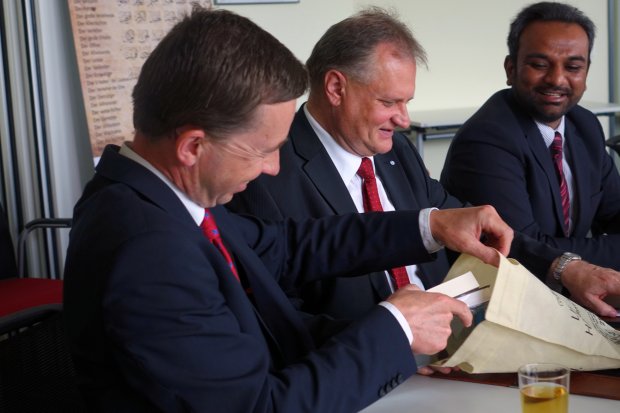 Analysts say he made a significant move by coming to Erfurt. In Erfurt Lucke met with representatives of the Ahmadiyya Muslim community on the planned site for the mosque in Marbach. He was surprised by the offbeat location and small size of the proposed Mosque.