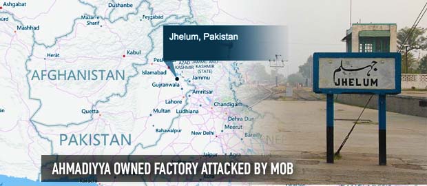 An angry mob set ablaze a factory owned by members of the Ahmadiyya Muslim Community in Jhelum on Friday.