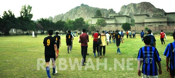01 May 2011 – Dar ul Yemen football ground set the scene for a friendly football match between Bhawana ( Jhang ) vs Rabwah (Fazl e Umer Football Club). The visiting team came from Bhanwana which is a locality of Jhang Distt the centre of Anti-Ahmadiyya hate campaign, but those religious feeling were set aside for the game. Team Rabwah sported striped blue shirts while for the host team the colour of the day was black.Both teams played energetically till the end of the first half but were unable to score any goals.