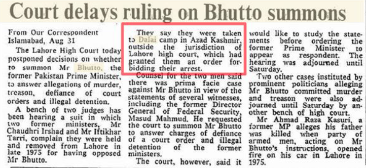 Rashid Ud Din, Former Head Constable FSFFSF recruiters went to every town in Pakistan and said, “We need tall, strong and energetic people. Qualifications do not matter.” Not knowing what the force was all about, my father signed up. Training started the following week. It was very tough and a lot of people dropped out and went into hiding. My father continued and successfully completed the training in Rohri, Sindh. He was then hired as a head constable for the FSF and transferred to the FSF headquarters in Lahore. Shortly afterward, he was posted to Muzaffarabad, Kashmir along with his inspector and thirty soldiers. My father had no idea what awaited him there and nobody was told what was going on. They waited for one month in the camp in Muzaffarabad without knowing what would happen. Suddenly, in the middle of the night, the Pakistani CID (Criminal Investigation Department) who worked with the FSF walked into the rooms of the officers and soldiers and told everyone to put on their uniforms and gather their weapons; they then told everyone to quickly get into their cars. They were driven from Muzaffarbad to Dalai camp, The camp was Located off the road next to the Dalai Mountains, at a very well hidden and secure site. Dalai camp was the worst nightmare of Bhutto’s opponents, this is where the FSF tortured and murdered any one who opposed the Bhutto regime.
