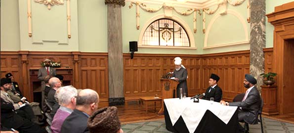 Upon the conclusion of the event, Hazrat Mirza Masroor Ahmad met with various dignitaries including the Ambassadors of Iran and Israel. His Holiness was then given a tour of Parliament by Kanwaljit Singh Bakshi MP and thereafter His Holiness led the Zuhr and Asr prayers at the Parliament.