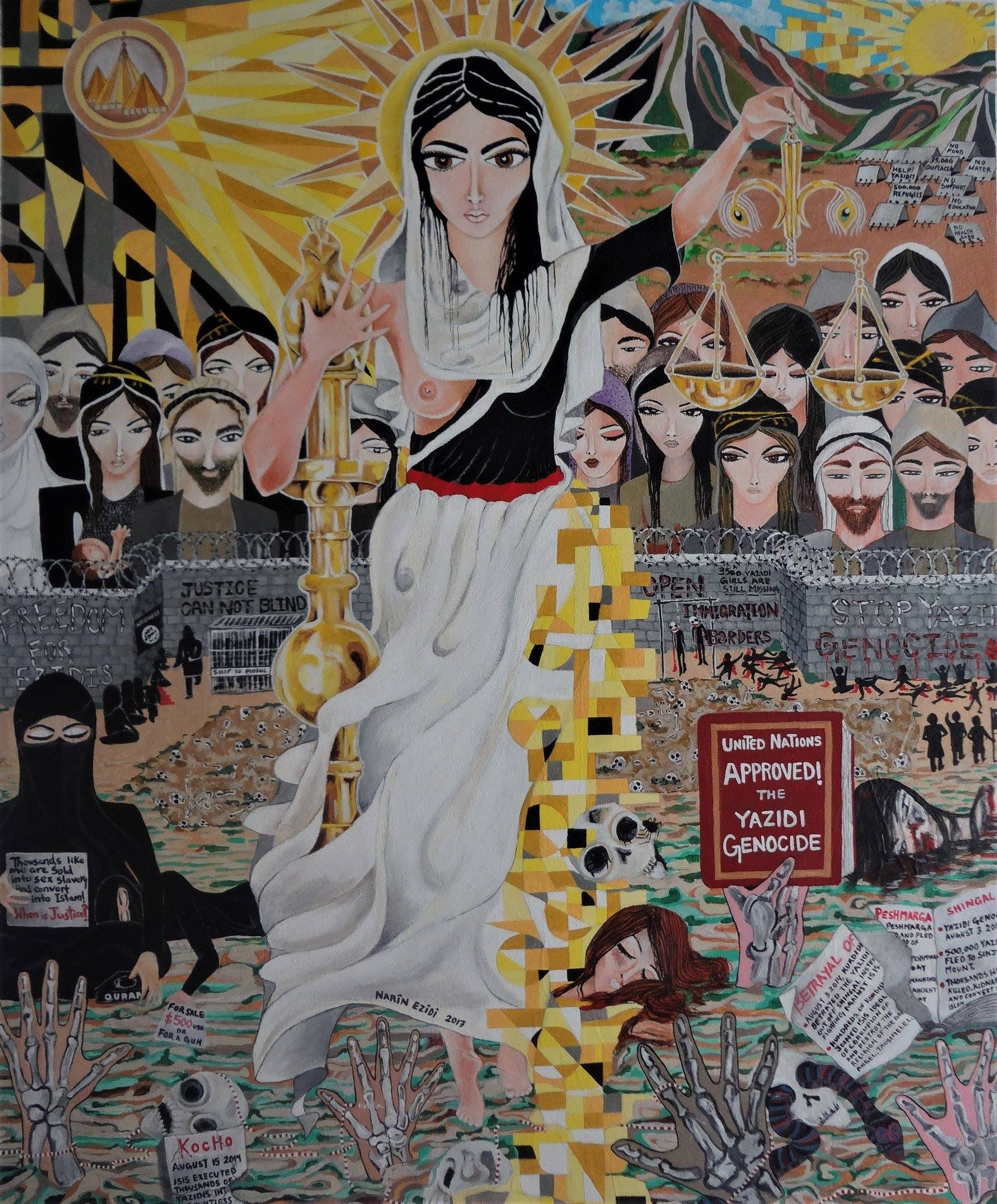 A painter, two of Ezidi’s most prolific works depict the current situation of Yazidi women.