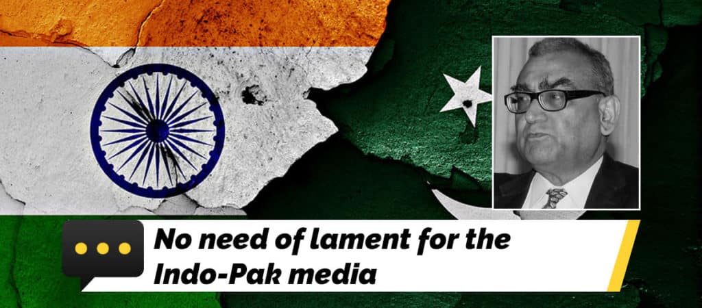 Media persons in the Indian subcontinent are crying hoarse and are weeping and wailing over the curbs on media freedom and gagging of press freedom in both India and Pakistan. In India, many complain that they dare not question the government lest they lose their jobs and/or are booked for sedition and on other charges, as indeed many have been. In Pakistan, they lament over the arrest and long detention of Mir Shakil ur Rehman, owner of the Jang group of publications, and harassment of media persons. But is their lament justified? I submit it is not, and I wish to give my reasons.