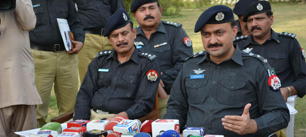 According to a police spokesman, policemen were taking two men Muhammad Hanif and Raja Iftikhar Ahmad accused of orchestrating attacks on Ahmadiyya Mosques, to recover hidden arms, when four to five armed men opened fire at the police party on Indus Highway near Taunsa Bypass.