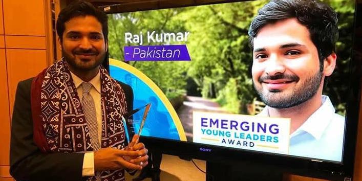 A Pakistani Hindu has become the first Pakistani to be awarded the Emerging Young Leaders Award. The award is granted by the U.S. Department of State to a group of young leaders in recognition of their efforts to promote positive social change in their communities.