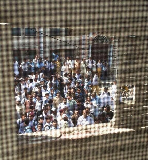 Police officers present at the scene watched on as the crowd of angry men started hurling stones & bricks at the mosque after their forceful takeover of the Mosque failed.