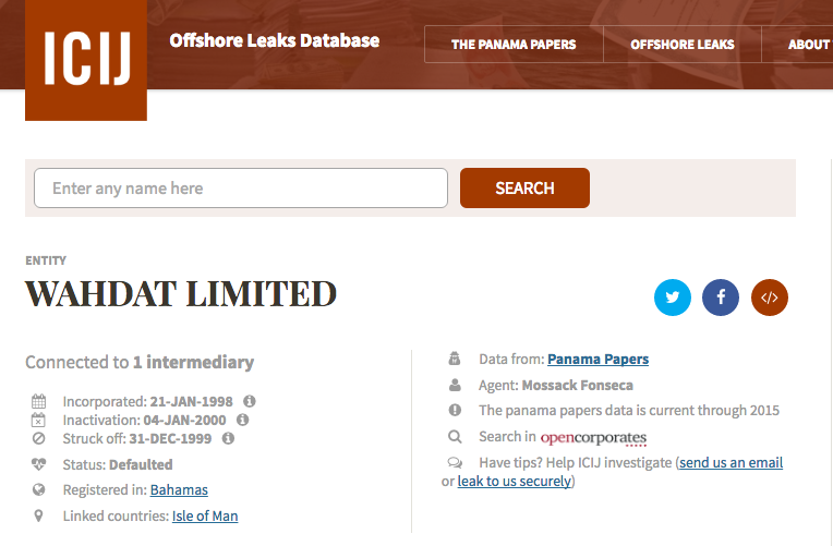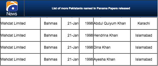 A list released by Pakistani news channel Geo TV linked Khan’s brother Abdul Quiyum Khan, daughters Ayesha Khan, Dina Khan and Dutch wife Hendrina Khan to a Bahamas based company Wahdat Limited. The company was incorporated in 1998 and defaulted just after two years in January 2000. According to U.S intelligence officials Khan is said to have held dealings with Iran, Libya, and North Korea. Khan’s smuggling network was exposed in 2003, and he confessed to selling nuclear secrets on Pakistani television in February 2004. In 2005 The Times revealed that Tehran had privately confirmed to IAEA investigators that it held at least 13 meetings with Khan’s representatives from 1994 to 1999, around the same time Wahdat Limited was incorporated in the Bahamas. Dr Khan allegedly used the money from the deals to buy houses around Pakistan, as well as London and a hotel in Timbuktu, Africa.
