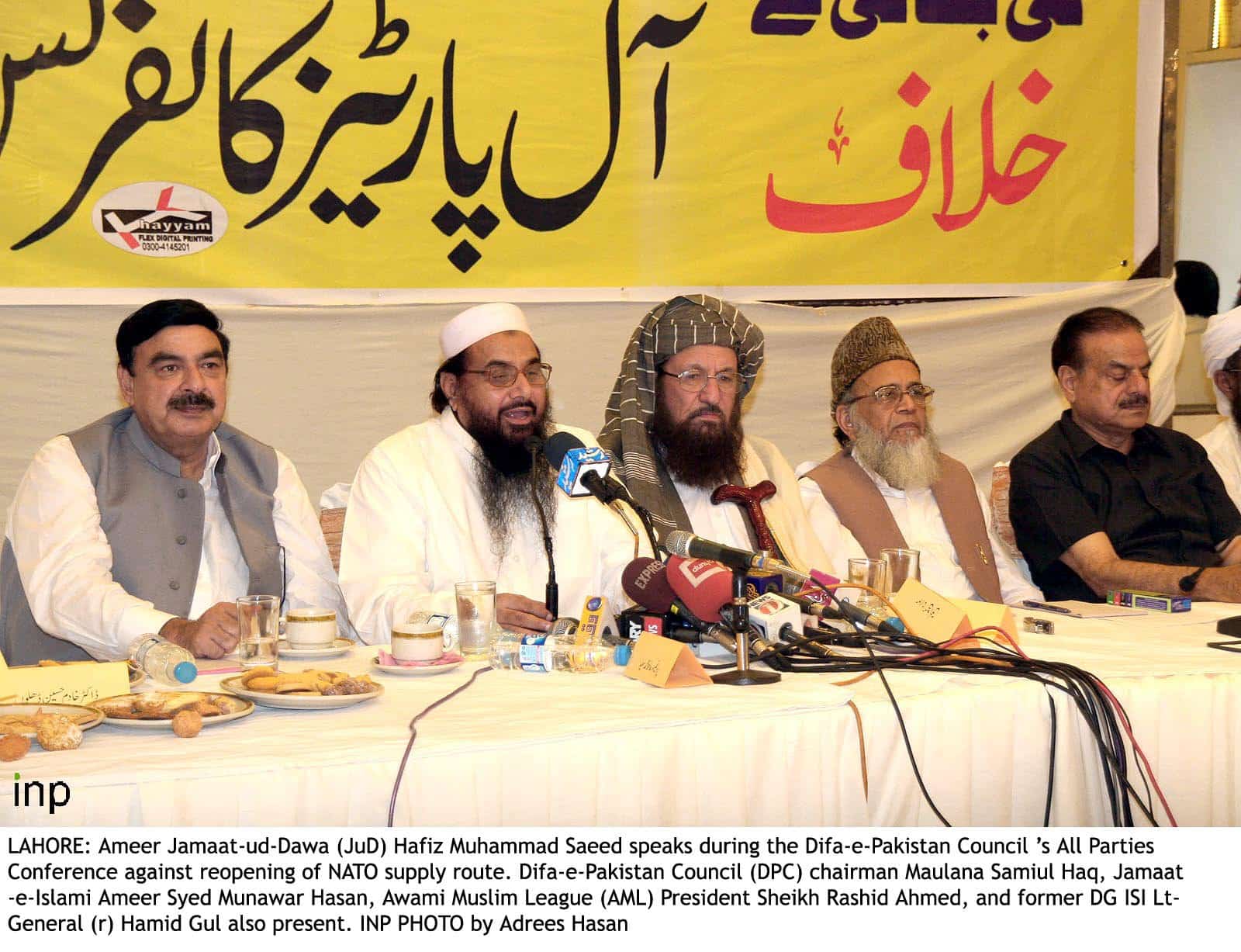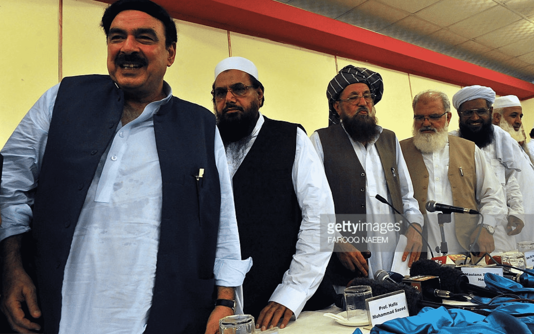 In 2016, Rasheed joined “Difa-e-Pakistan” a coalition of Islamist political parties lead by U.N. designated terrorist Hafiz Saeed, ‘Father of Taliban’ Maulana Sami ul Haq and Ahmed Ludhianvi, leader of the banned Sipah-e-Sahaba (SSP) which rebranded itself as Ahle Sunnat wal Jammat (ASWJ) which is also banned in Canada.