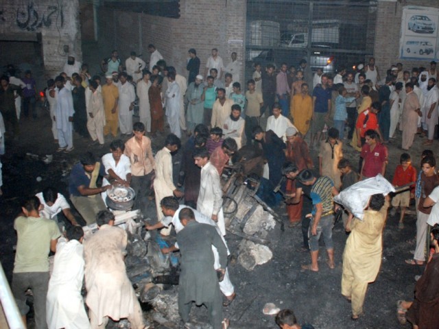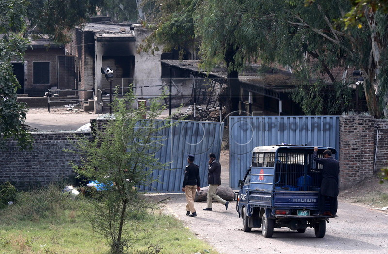 epa05039926 Police inspect burnt out vehicles after a mob torched a factory belonging to minority Ahmadi community in Kala Gojra, Pakistan, 24 November 2015. Pakistani security agencies on 24 November arrested some 45 suspects for their alleged involvement in torching a factory belonging to Ahmadi community and inciting violence against them for an alleged blasphemy.  EPA/RAHAT DAR