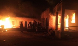 When the angry men moved towards our quarters, they were told by some non-Ahmadis to only target the living quarters of Ahmadis, I was told by my contact. They stole from our residences and then set them on fire. They had also started running in the direction of Ahmadis who had managed to flee with batons and torches.