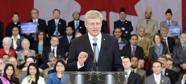 Speaking at the Ahmadiyya Muslim Centre in Toronto Prime Minister Stephen Harper said: