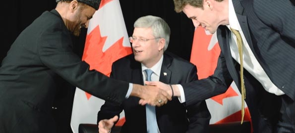 At Tuesday’s announcement at the mosque in Vaughn, Harper was accompanied by Immigration Minister Jason Kenney and International Cooperation Minister Julian Fantino.