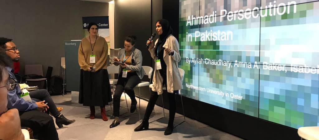 On October 27, Pulitzer Center’s three student fellows presented their reporting project on Pakistan’s Ahmadis as part of the annual fellows weekend in Washington, D.C. The trio who are currently enrolled at the Northwestern University in Qatar were selected by the acclaimed Pulitzer Center as student fellows back in May.