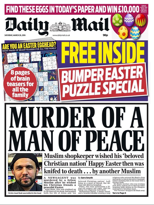 Mohammad Faisal, a family friend, said a bearded Muslim wearing a long religious robe entered Mr Shah’s shop and spoke to him in his native language before stabbing him in the head with a kitchen knife.It is suspected that Shah was killed by another Muslim man because he was an Ahmadiyya Muslim. His murder is believed to be the first major anti-Ahmadi incident in the UK, and has sparked fears Islamic sectarianism has spread to Britain.Ahmadis are considered heretics by many Sunni Muslims, and are viciously persecuted in Pakistan.