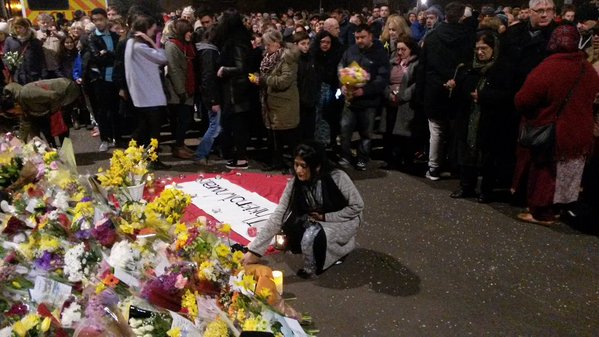 Crowd of 400 to 500 people gathered for a silent vigil late on Friday night to honour the respected shopkeeper near the site where he died. Scottish First Minister Nicola Sturgeon joined the Friday vigil in support of Shah and his family in Glasgow. Many lit candles and left flowers.