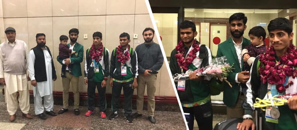 Pakistan’s Special Olympians returned home from Abu Dhabi on Friday with an impressive count of 18 gold, 27 silver and 17 bronze medals. The athletes and coaches received a heroes welcome at Lahore Airport.