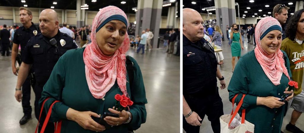 By removing Ms. Hamid from the rally, because she stood in a silent protest – wearing a hijab and a T-shirt with the words ‘Salaam, I come in peace’, Donald Trump, who’s running for the office of the President of the United States, has once again behaved in a way that is completely in contradiction to the U.S. Constitution; the very constitution that he wants to be sworn to protect; except when it comes to winning that very office that is supposed to protect it, apparently.